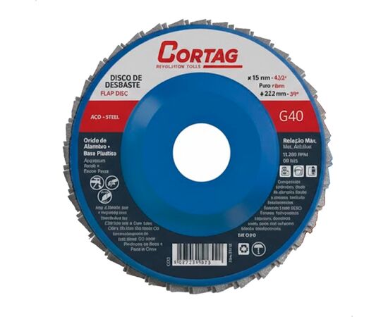 Disco de Desbaste Flap Disc 4.1/2" 115mm G40 Cortag – Disco de Lixa Grão 40 para Metal (Ref. 61405) Descrição: O Disco Flap Cortag de 4.1/2" (115 mm) Grão 40 é a ferramenta indispensável para processos de desbaste e acabamento em superfícies metálicas. Composto por lixas de óxido de alumínio de alta qualidade dispostas em formato de abas (flaps), este disco... ler mais