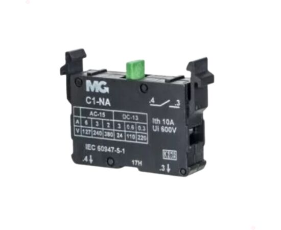 Bloco de contato 1NA C1 Margirius  Os blocos de contato foram desenvolvidos para garantir a máxima segurança e confiabilidade. São compatíveis com as botoeiras MarGirius, ampliando suas possibilidades de utilização em esquemas de comando