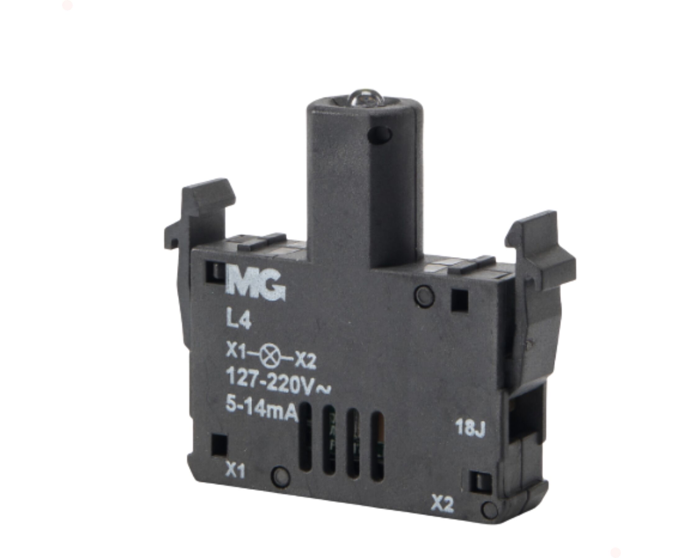 Os blocos de iluminação são compatíveis com os modelos de botoeiras MarGirius com visor. Cod. 17474 Atuador : L4 Especificações :  127/220VCA Tecnologia:LED Faixa de tensão de operação: ± 10%