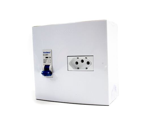 Caixa 4x4  c/ disjuntor unipolar curva C + tomada 2P+T 20A As caixas de sobrepor 4×4″ são usadas no comando e proteção contra sobrecargas e curtos-circuitos (apenas nos modelos com Disjuntor) de equipamentos eletroeletrônicos. Para aparel