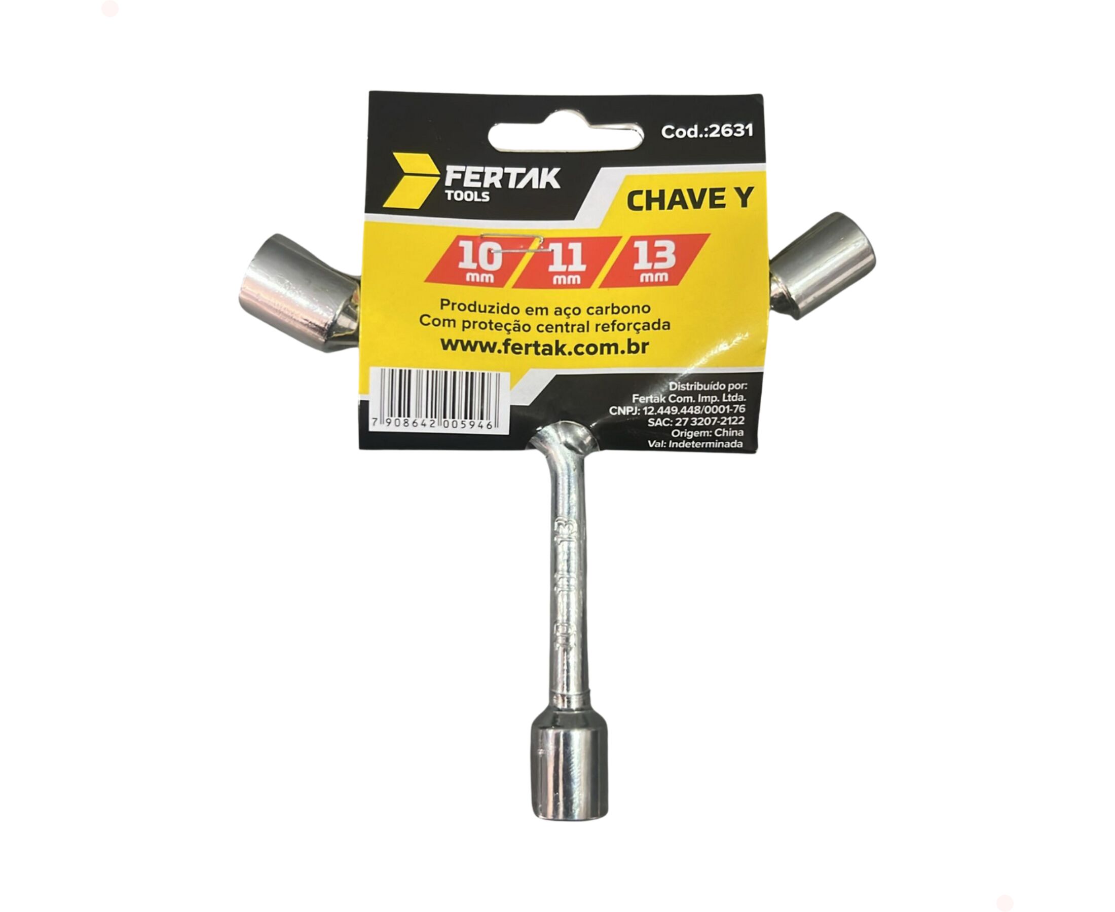 Chave Canhão Y 3 Pontas Fertak 2631 – 10, 11 e 13 mm Marca: Fertak | Modelo: 2631 Medidas: 10 mm, 11 mm e 13 mm Formato em Y para melhor pegada e torque Ideal para apertos e manutenções em geral Fabricada em aço resistente Ferramenta prática e compacta