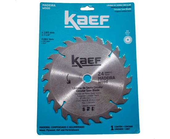 LAMINA DE SERRA CIRCULAR PARA MADEIRA 24 DENTES 185 MM KAEF CORTAG 61751