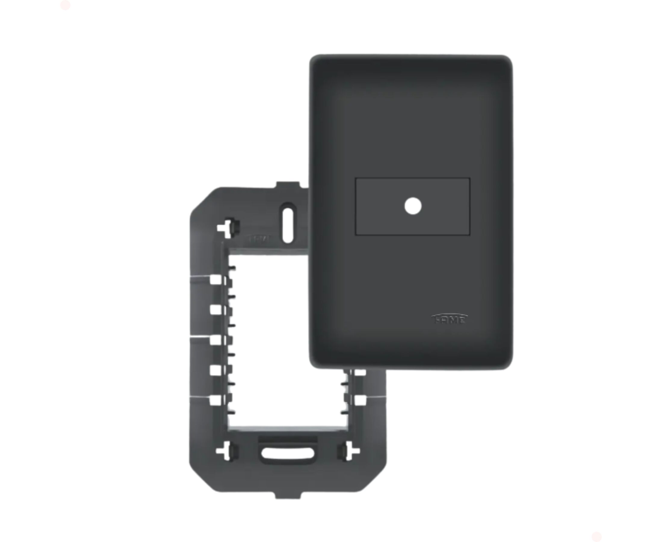 Marca: FAME Linha: Habitat Black Modelo: 4070 Tamanho: 4x2 Cor: Preto Capacidade: 1 módulo Acompanha suporte: Sim Saída de fio: Sim Material: Termoplástico de alta resistência Aplicação: Instalações elétricas, ideal para passagem de fios e cabos em paredes ou superfícies.