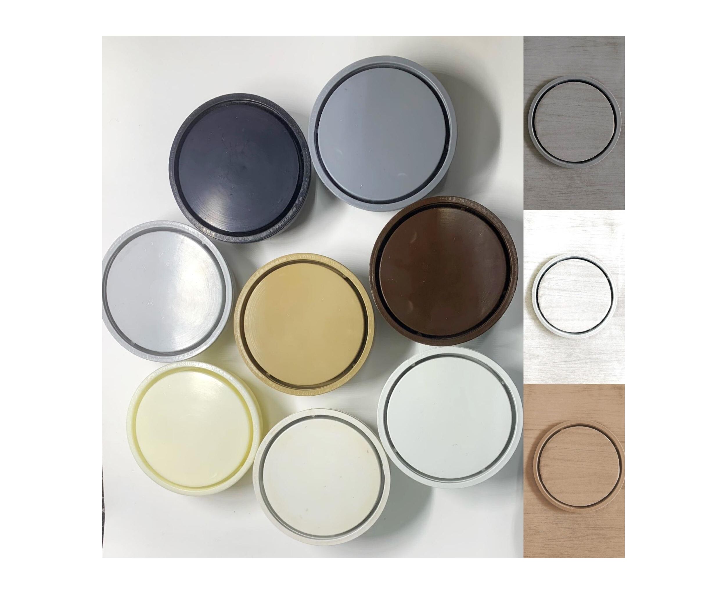 Ralo redondo Inv/Oculto com duas opções de acabamento.Para tubulação de 100 mm.Diâmetro interno da base 97 mm, altura 22 mm. Materia prima Importada Thermoplástico ABS puro/virgem.